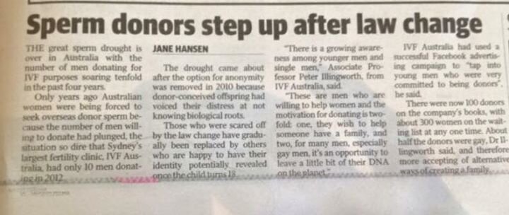 The myth of donor anonymity is perpetuated by researchers. An article in the December 2016 issue of the Journal of Law and the Biosciences, Sperm donor anonymity and compensation: an experiment with American sperm donors, illustrates the fact that the US sperm banking industry is still not properly educating prospective donors and parents about the myth of anonymity. With DNA testing, Google, and social media, anonymity is a thing of the past. Sperm banks (and egg clinics) need to stop the fallacy of selling "anonymous" donors, and the "experts" need to stop perpetuating this idea. Donor-conceived people have been locating their donors via DNA testing since 2005 (see November 2005 New Scientist Magazine) — so this is not new. This published "study" was conducted in partnership with a sperm bank that profits more from offering anonymous donors. Communication with their donors about anonymity had already taken place. How was this major conflict of interest acceptable to the Journal of Law and Biosciences? In response to the article, Harvard Law published Wendy's blog contribution, DNA: Donors Not Anonymous, and the link to her HuffPo response blog, Sperm And Egg Donation: 10 Things Your Doctor, Clinic Or Sperm Bank Won’t Tell You.