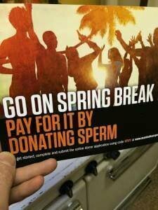 Selling your sperm means much more than paying for a spring break vacation. This kind of irresponsible advertising (from a NY sperm bank) only goes to show the lack of proper education given to prospective donors about decisions made now for a quick buck, which can affect them (and their families) for the rest of their lives.